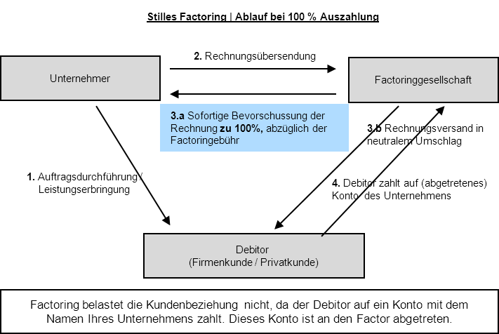 - Stilles Factoring, bis zu 100% Sofortauszahlung